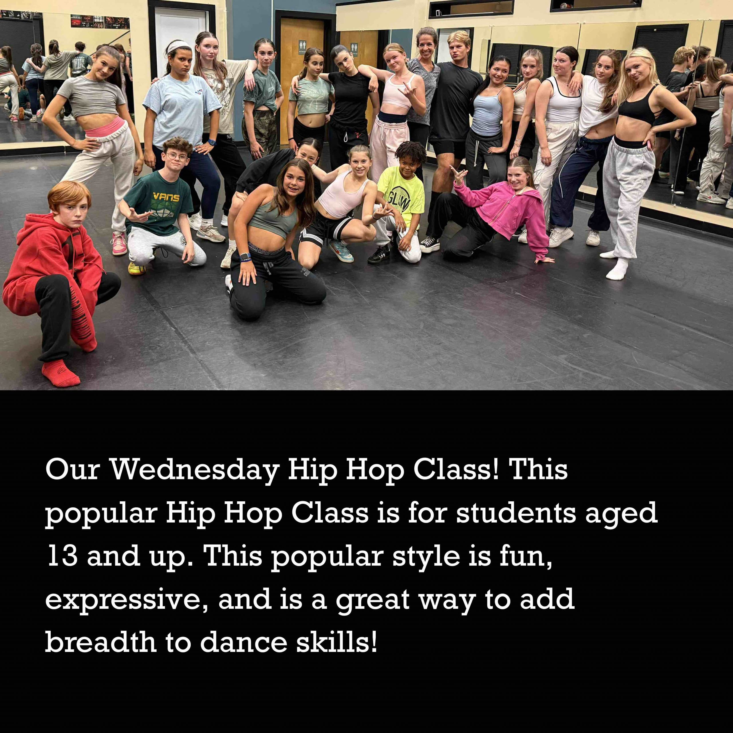 We offer public classes and a pre-professional program. Contemporary, hip hop, broadway, tap, ballet, and more are available.